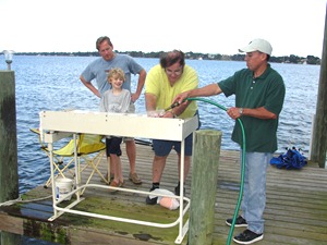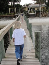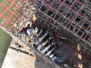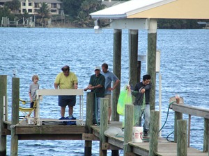 Our landlord, Mahmoud, came by to take care of some landscaping with his workers, Jonathan from Guatamala and Ramon from Cancun. “These two,” he explained, “know fishing.” It didn’t take long to have a dock full of boys and men, ready with sling nets for bait, and a surprise catch (Sheephead) already in the pot.